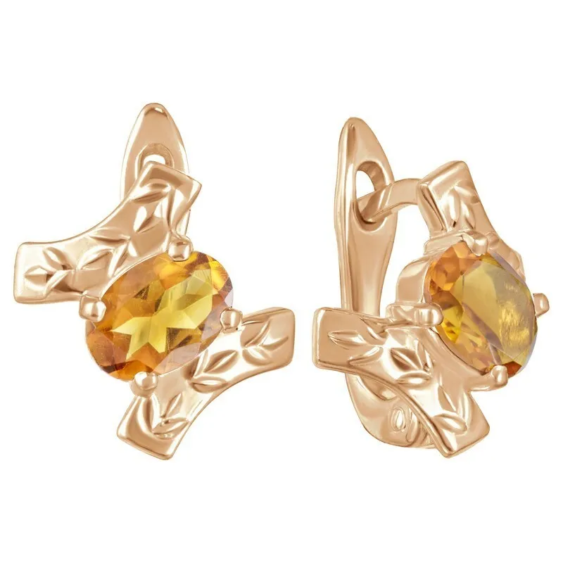 Серебряные серьги с натуральным цитрином (мадейра) - коллекция Тея / покрытие Розовое Золото