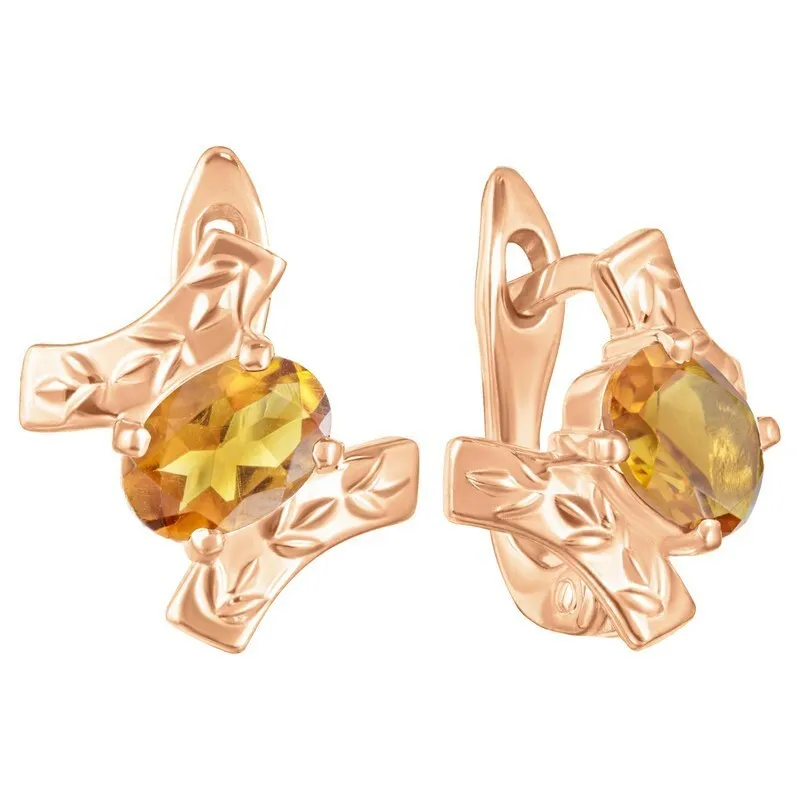 Серебряные серьги с натуральным цитрином (мадейра) - коллекция Тея / покрытие Красное Золото