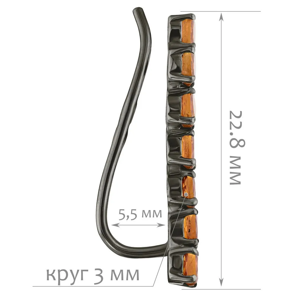 Серебряные серьги каффы с натуральным цитрином (мадейра) - коллекция Волна / покрытие Черный Родий.Средний вес украшения с камнями 1.77 гр.Месторождение: Цитрин (Урал, Россия)Ювелирные вставки:Цитрин (Натуральный) круг 3 мм., средний вес: 0.63 карат.Все изделия собственного производства и имеют гарантию 12 месяцев. Арт. 8746BR . Цитрин – камень, который активно использовался для инкрустации. С его помощью излечивали заболевания желудочно-кишечного тракта, он становился амулетом, приносящим удачу. Золотисто-жёлтый камень известен и любим очень давно за ряд своих положительных качеств.
