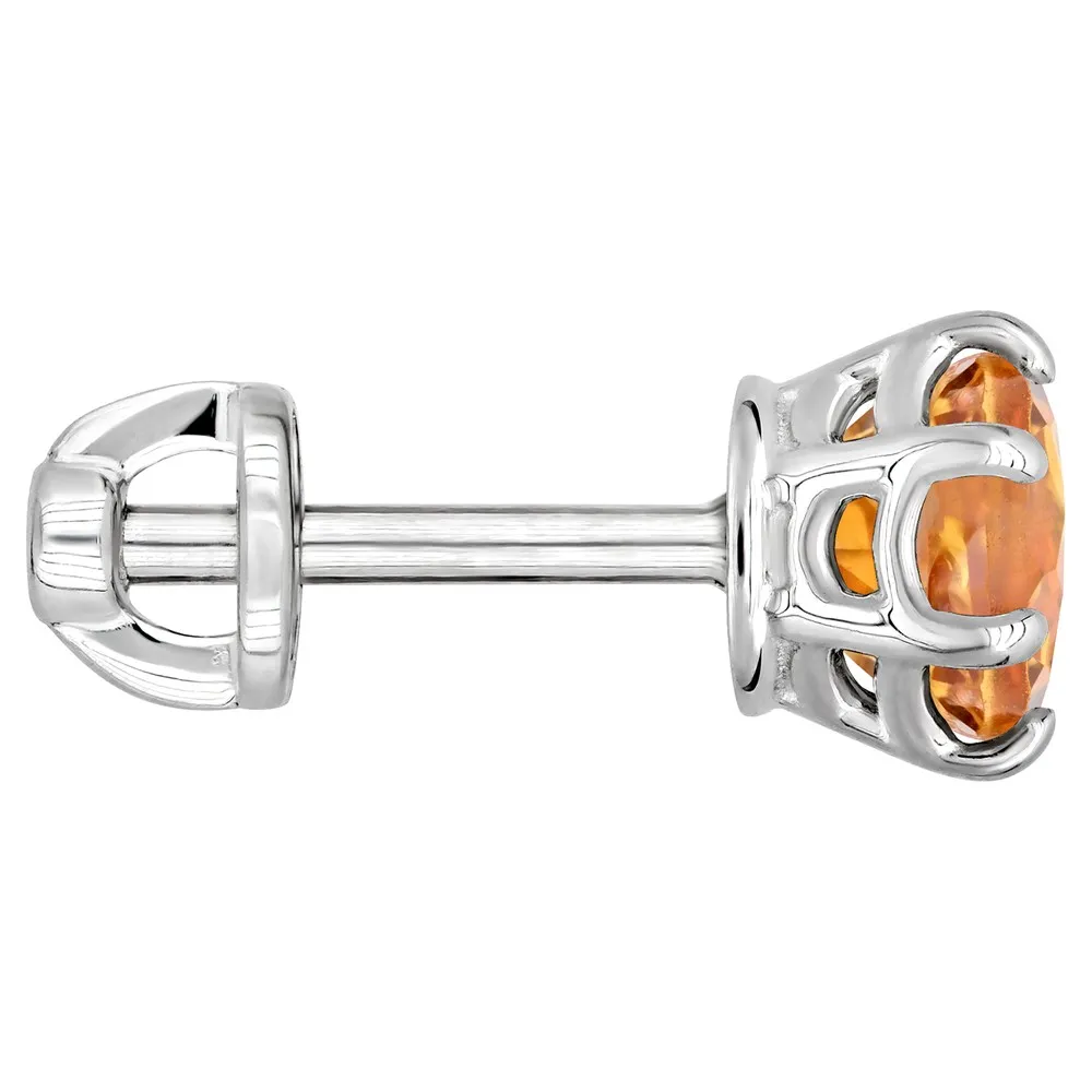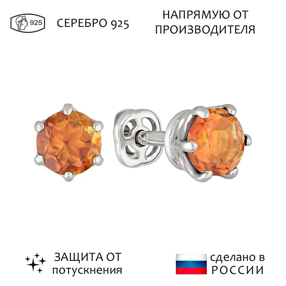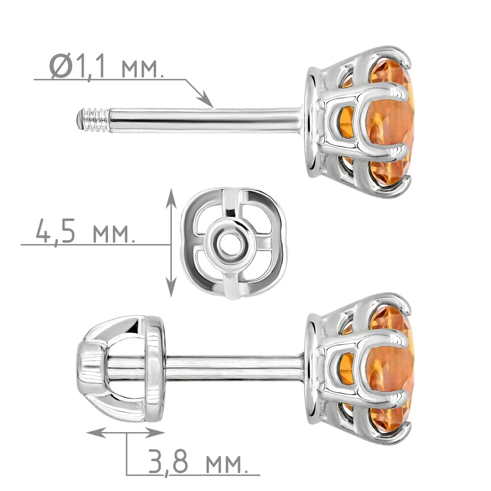 Серебряные серьги гвоздики (пусеты) с натуральным цитрином (мадейра) 5 мм. / Без покрытия.