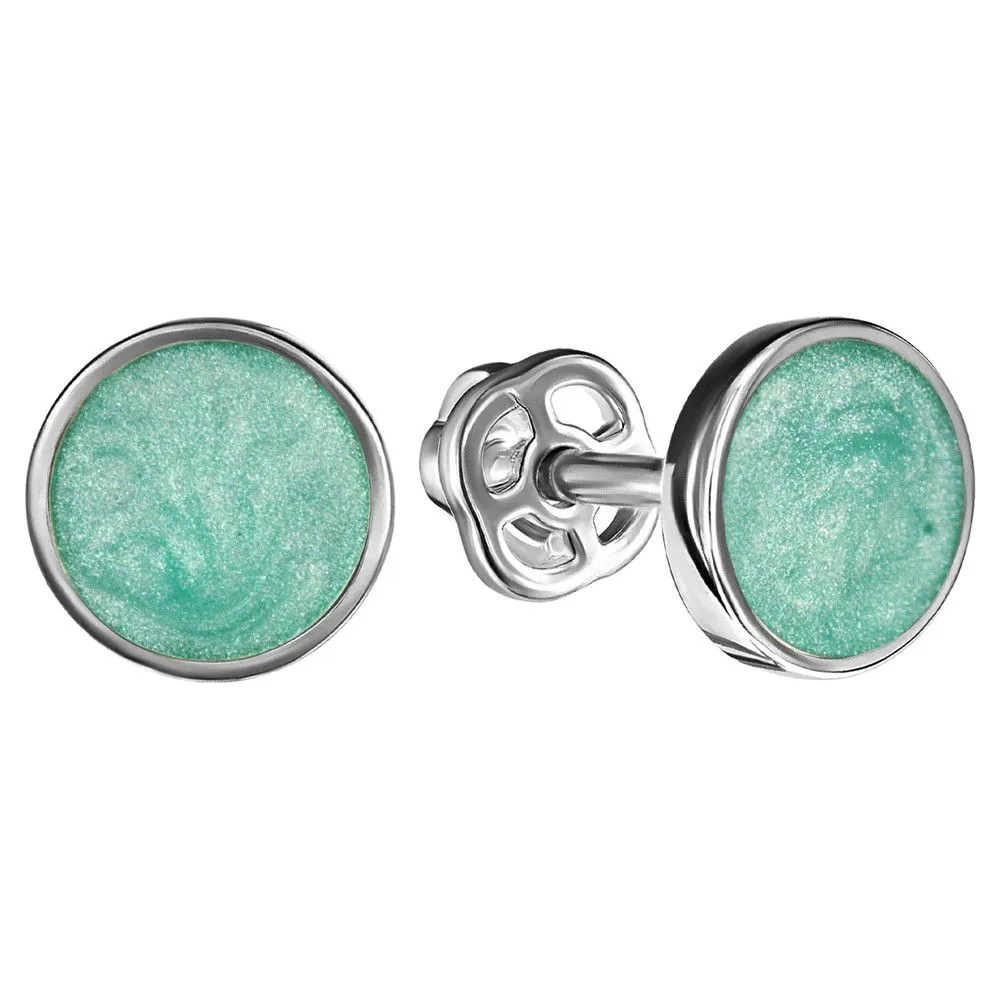 Серебряные серьги гвоздики (пусеты) с эмалью - цвет лазурный перламутр / Палладий. Средний вес ювелирного украшения 1.27 гр. Эмаль – холодная двухкомпонентная итальянская эмаль высокого качества. Имеет высокую степень устойчивости к царапинам и солнечному свету, ударам и механическим повреждениям.< /p> Все изделия собственного производства и имеют гарантию 12 месяцев. Арт. 8588PD.