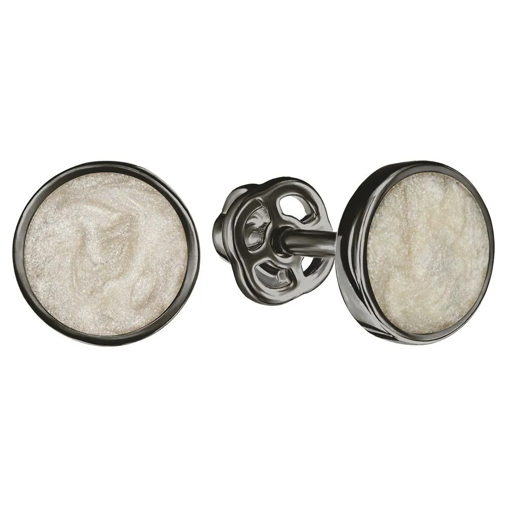 Серебряные серьги гвоздики (пусеты) с эмалью - цвет белый перламутр / Черный Родий. Средний вес ювелирного украшения 1.27 гр. Эмаль – холодная двухкомпонентная итальянская эмаль высокого качества. Имеет высокую степень устойчивости к царапинам и солнечному свету, ударам и механическим повреждениям.< /p> Все изделия собственного производства и имеют гарантию 12 месяцев. Арт. 8589BR.