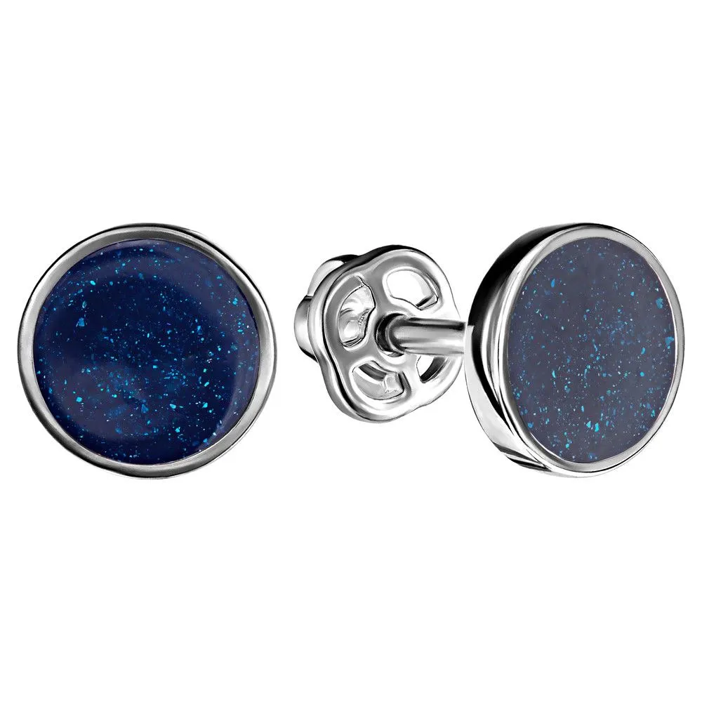 Серебряные серьги гвоздики (пусеты) с эмалью - цвет синий перламутр / Палладий. Средний вес ювелирного украшения 1.27 гр. Эмаль – холодная двухкомпонентная итальянская эмаль высокого качества. Имеет высокую степень устойчивости к царапинам и солнечному свету, ударам и механическим повреждениям.< /p> Все изделия собственного производства и имеют гарантию 12 месяцев. Арт. 8590PD.