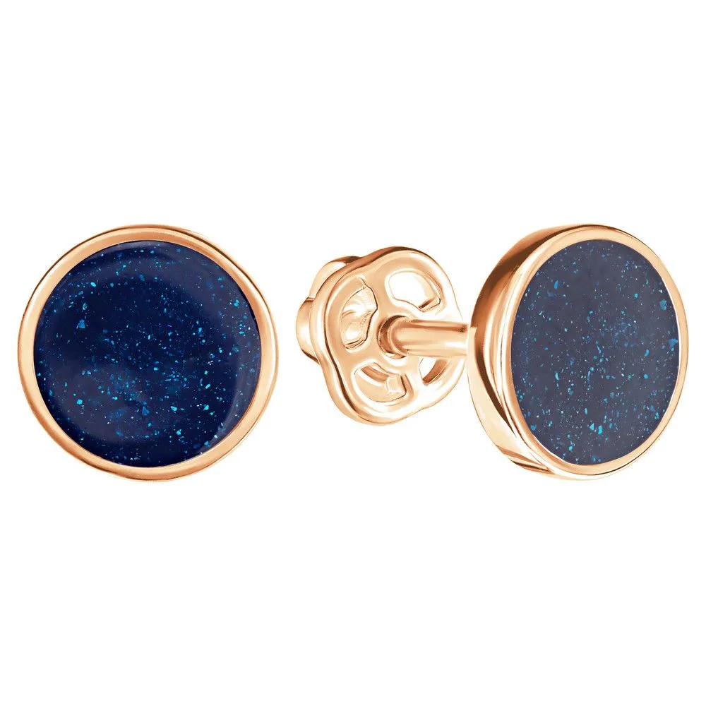 Серебряные серьги гвоздики (пусеты) с эмалью - цвет синий перламутр / Красное золото. Средний вес ювелирного украшения 1.27 гр. Эмаль – холодная двухкомпонентная итальянская эмаль высокого качества. Имеет высокую степень устойчивости к царапинам и солнечному свету, ударам и механическим повреждениям.< /p> Все изделия собственного производства и имеют гарантию 12 месяцев. Арт. 8590RG.