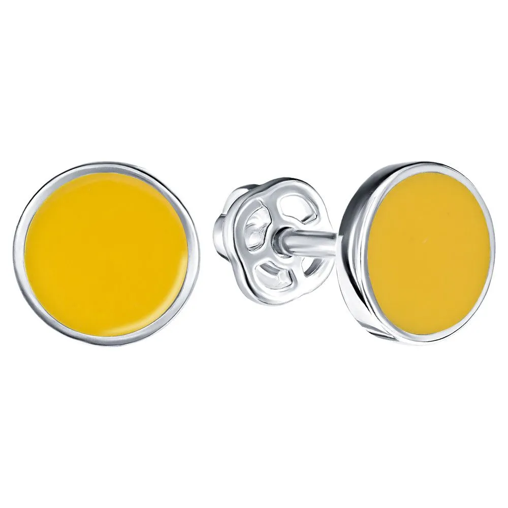 Серебряные серьги гвоздики (пусеты) с эмалью - цвет желтый / Чистое Серебро. Средний вес ювелирного украшения 1.27 гр. Эмаль – холодная двухкомпонентная итальянская эмаль высокого качества. Имеет высокую степень устойчивости к царапинам и солнечному свету, ударам и механическим повреждениям.< /p> Все изделия собственного производства и имеют гарантию 12 месяцев. Арт. 8594AG.