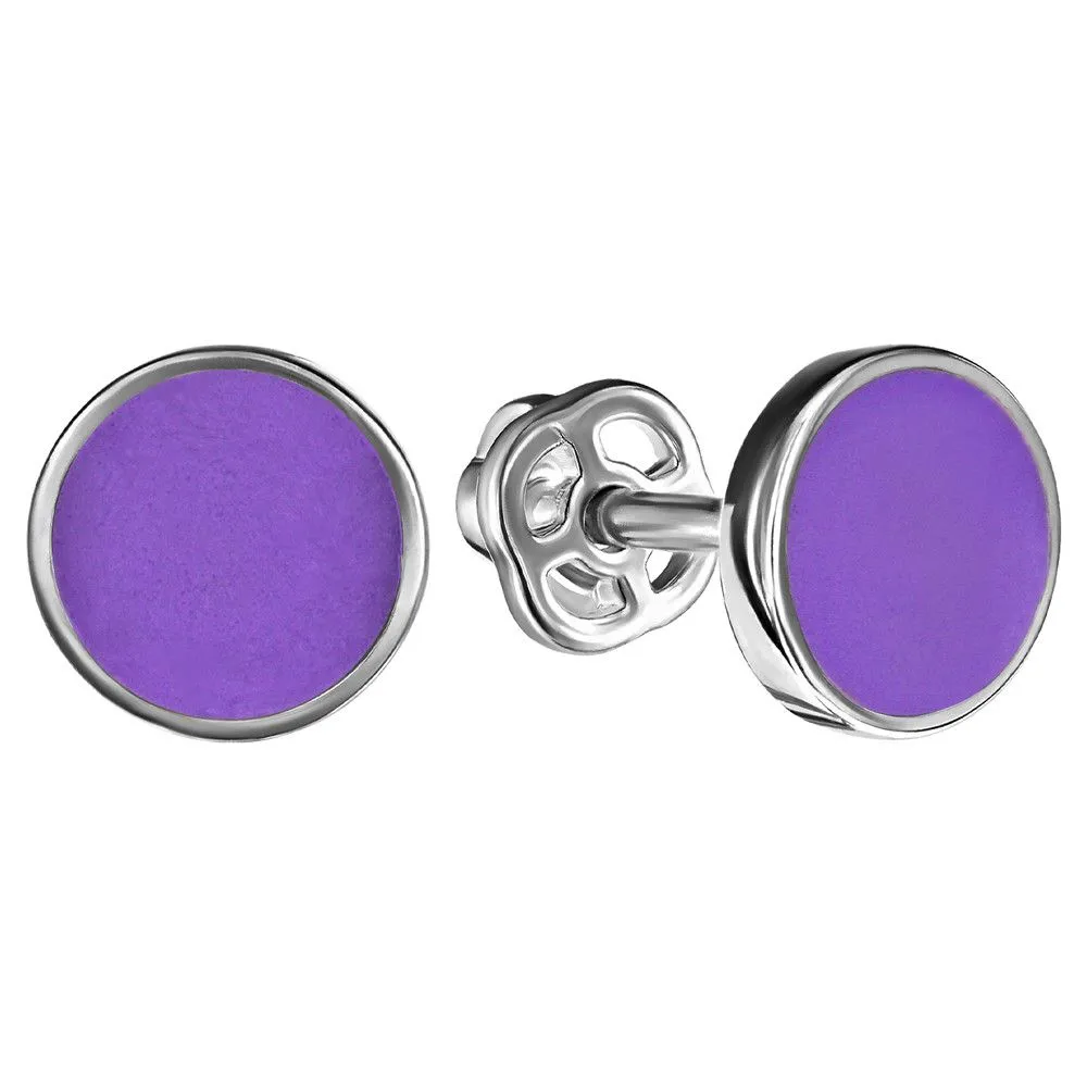 Серебряные серьги гвоздики (пусеты) с эмалью - цвет лавандовый / Палладий. Средний вес ювелирного украшения 1.27 гр. Эмаль – холодная двухкомпонентная итальянская эмаль высокого качества. Имеет высокую степень устойчивости к царапинам и солнечному свету, ударам и механическим повреждениям.< /p> Все изделия собственного производства и имеют гарантию 12 месяцев. Арт. 8595PD.