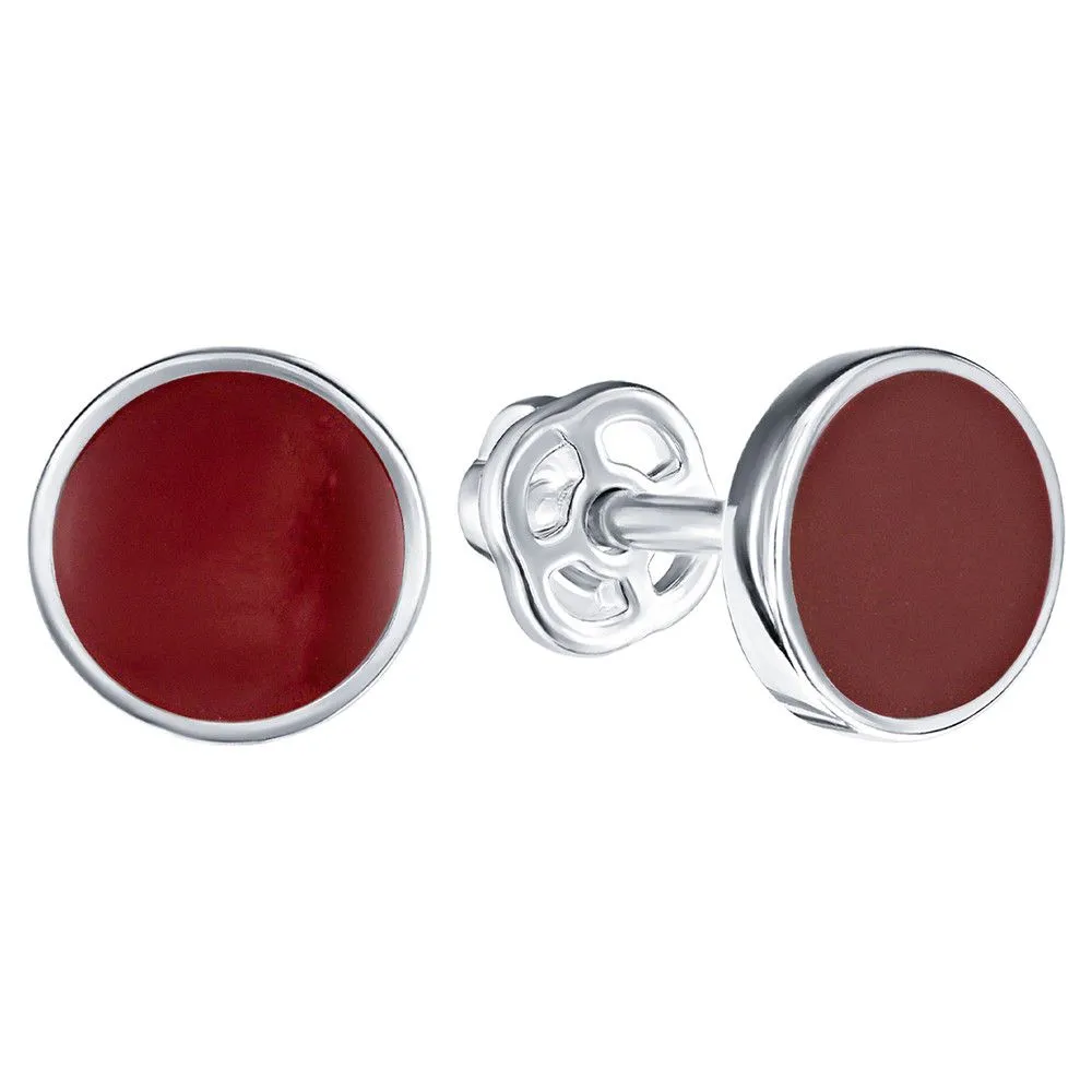 Серебряные серьги гвоздики (пусеты) с эмалью - цвет бордовый / Чистое Серебро. Средний вес ювелирного украшения 1.27 гр. Эмаль – холодная двухкомпонентная итальянская эмаль высокого качества. Имеет высокую степень устойчивости к царапинам и солнечному свету, ударам и механическим повреждениям.< /p> Все изделия собственного производства и имеют гарантию 12 месяцев. Арт. 8597AG.