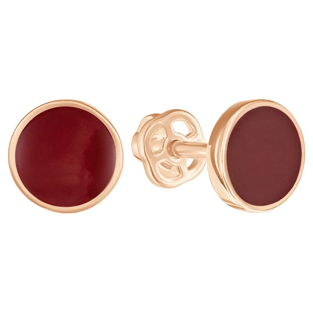 Серебряные серьги гвоздики (пусеты) с эмалью - цвет бордовый / Красное золото. Средний вес ювелирного украшения 1.27 гр. Эмаль – холодная двухкомпонентная итальянская эмаль высокого качества. Имеет высокую степень устойчивости к царапинам и солнечному свету, ударам и механическим повреждениям.< /p> Все изделия собственного производства и имеют гарантию 12 месяцев. Арт. 8597RG.
