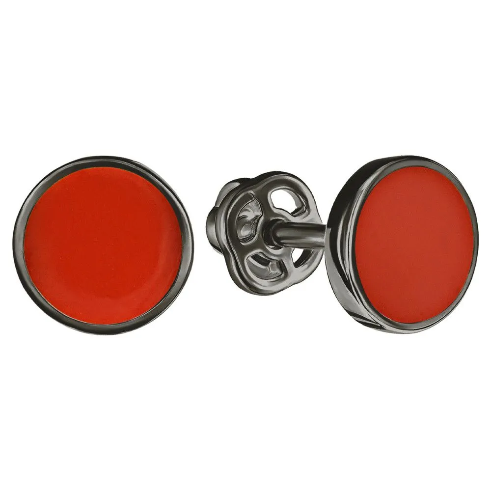 Серебряные серьги гвоздики (пусеты) с эмалью - цвет оранжевый / Черный Родий. Средний вес ювелирного украшения 1.27 гр. Эмаль – холодная двухкомпонентная итальянская эмаль высокого качества. Имеет высокую степень устойчивости к царапинам и солнечному свету, ударам и механическим повреждениям.< /p> Все изделия собственного производства и имеют гарантию 12 месяцев. Арт. 8598BR.