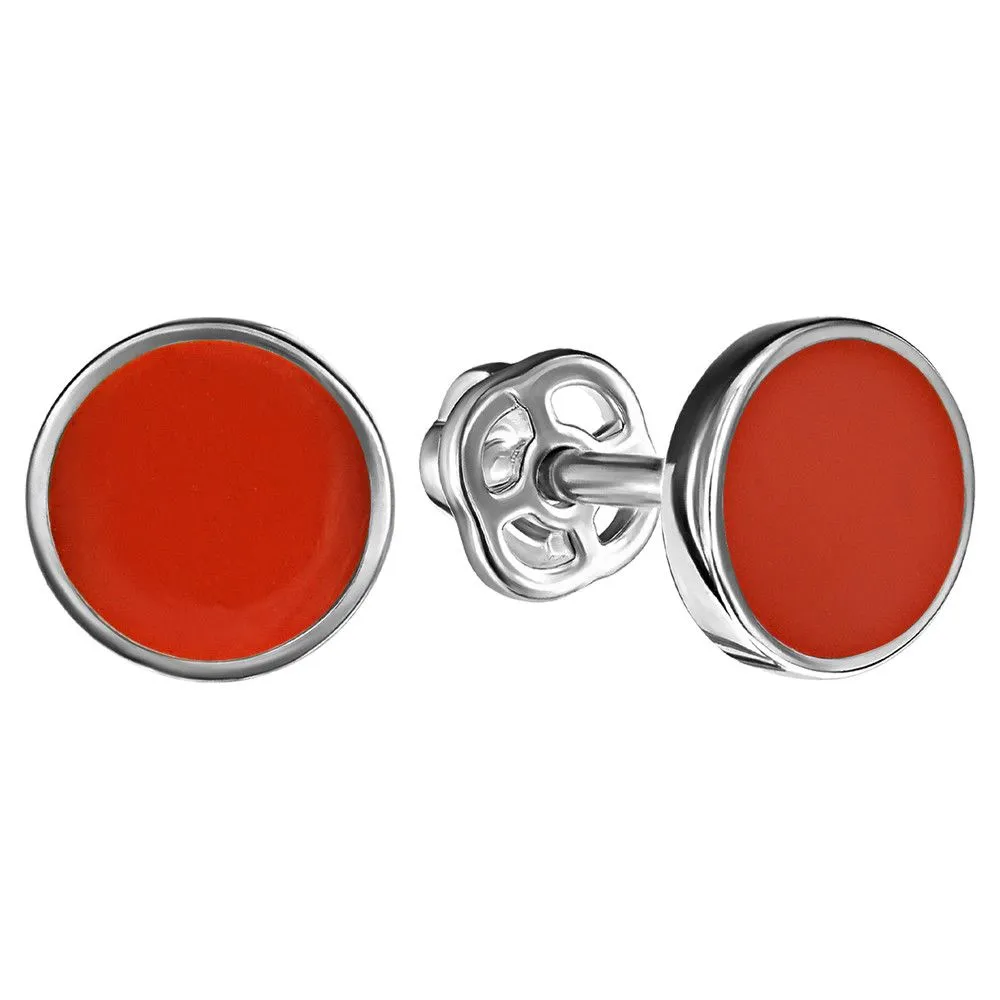 Серебряные серьги гвоздики (пусеты) с эмалью - цвет оранжевый / Палладий. Средний вес ювелирного украшения 1.27 гр. Эмаль – холодная двухкомпонентная итальянская эмаль высокого качества. Имеет высокую степень устойчивости к царапинам и солнечному свету, ударам и механическим повреждениям.< /p> Все изделия собственного производства и имеют гарантию 12 месяцев. Арт. 8598PD.