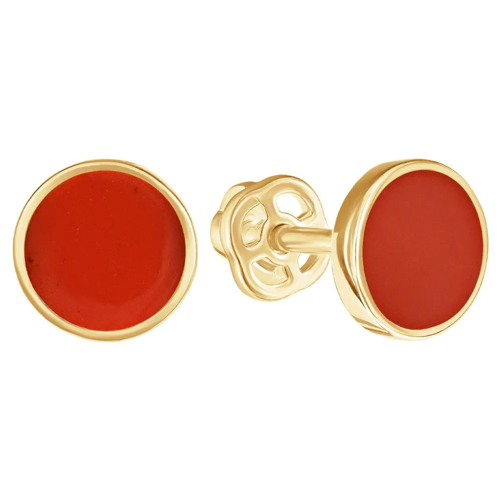 Серебряные серьги гвоздики (пусеты) с эмалью - цвет оранжевый / Желтое Золото. Средний вес ювелирного украшения 1.27 гр. Эмаль – холодная двухкомпонентная итальянская эмаль высокого качества. Имеет высокую степень устойчивости к царапинам и солнечному свету, ударам и механическим повреждениям.< /p> Все изделия собственного производства и имеют гарантию 12 месяцев. Арт. 8598YG.