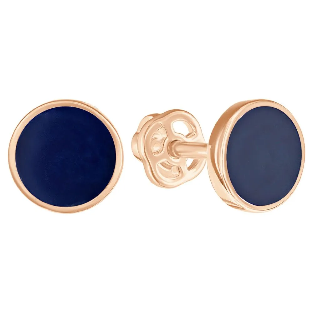 Серебряные серьги гвоздики (пусеты) с эмалью - цвет синий / Красное золото. Средний вес ювелирного украшения 1.27 гр. Эмаль – холодная двухкомпонентная итальянская эмаль высокого качества. Имеет высокую степень устойчивости к царапинам и солнечному свету, ударам и механическим повреждениям.< /p> Все изделия собственного производства и имеют гарантию 12 месяцев. Арт. 8599RG.