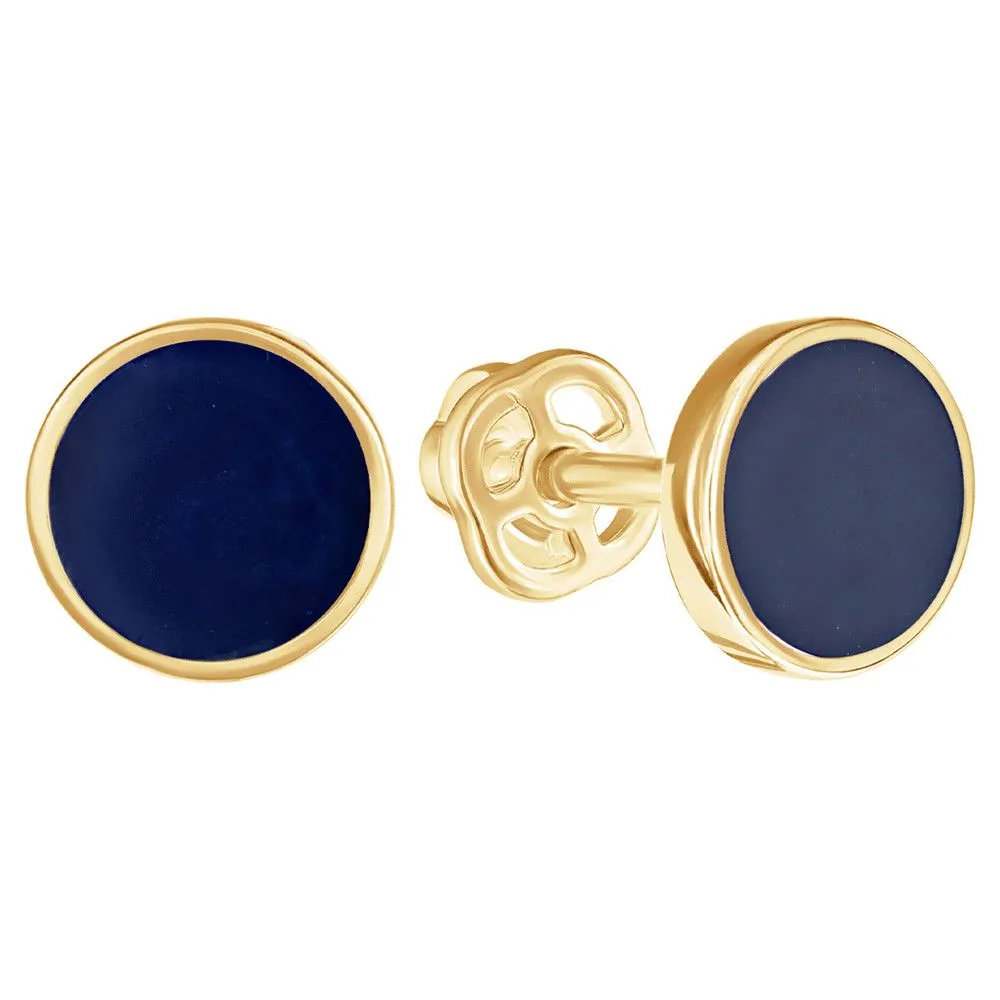 Серебряные серьги гвоздики (пусеты) с эмалью - цвет синий / Желтое Золото. Средний вес ювелирного украшения 1.27 гр. Эмаль – холодная двухкомпонентная итальянская эмаль высокого качества. Имеет высокую степень устойчивости к царапинам и солнечному свету, ударам и механическим повреждениям.< /p> Все изделия собственного производства и имеют гарантию 12 месяцев. Арт. 8599YG.