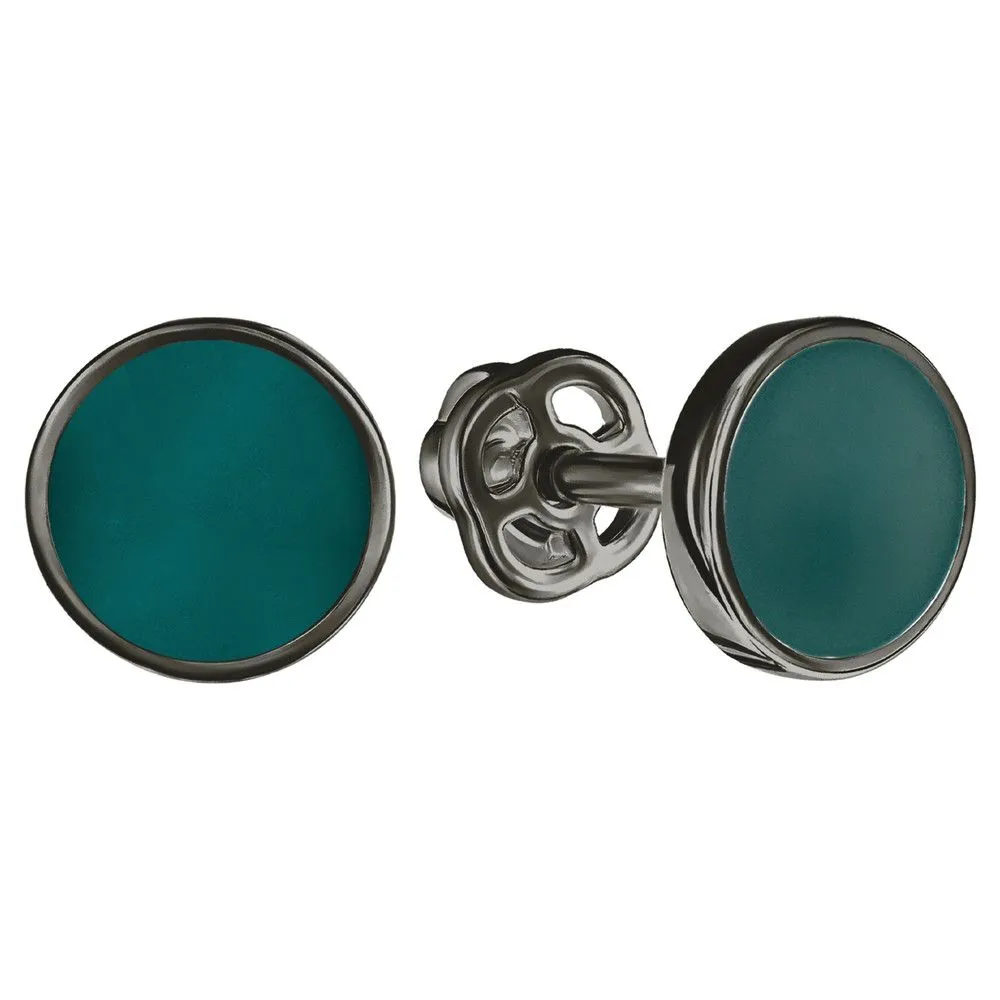 Серебряные серьги гвоздики (пусеты) с эмалью - цвет бирюзовый / Черный Родий. Средний вес ювелирного украшения 1.27 гр. Эмаль – холодная двухкомпонентная итальянская эмаль высокого качества. Имеет высокую степень устойчивости к царапинам и солнечному свету, ударам и механическим повреждениям.< /p> Все изделия собственного производства и имеют гарантию 12 месяцев. Арт. 8600BR.