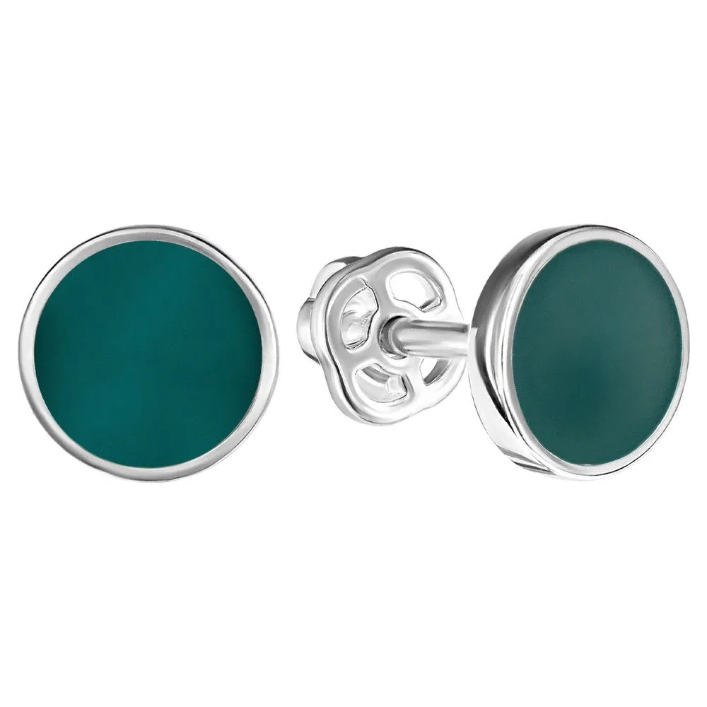 Серебряные серьги гвоздики (пусеты) с эмалью - цвет бирюзовый / Без покрытия. Средний вес ювелирного украшения 1.27 гр. Эмаль – холодная двухкомпонентная итальянская эмаль высокого качества. Имеет высокую степень устойчивости к царапинам и солнечному свету, ударам и механическим повреждениям.< /p> Все изделия собственного производства и имеют гарантию 12 месяцев. Арт. 8600NP.