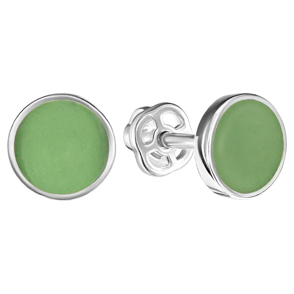 Серебряные серьги гвоздики (пусеты) с эмалью - цвет фисташковый / Без покрытия. Средний вес ювелирного украшения 1.27 гр. Эмаль – холодная двухкомпонентная итальянская эмаль высокого качества. Имеет высокую степень устойчивости к царапинам и солнечному свету, ударам и механическим повреждениям.< /p> Все изделия собственного производства и имеют гарантию 12 месяцев. Арт. 8601NP.