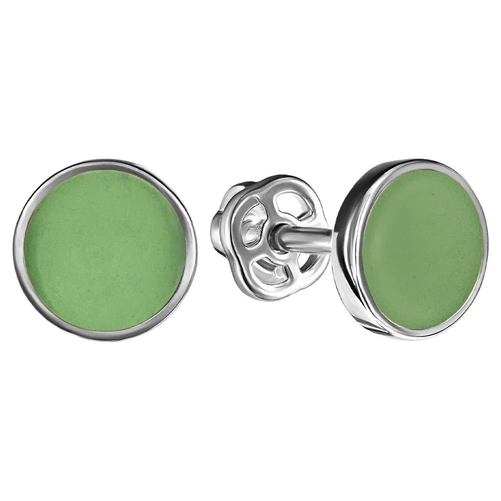 Серебряные серьги гвоздики (пусеты) с эмалью - цвет фисташковый / Палладий. Средний вес ювелирного украшения 1.27 гр. Эмаль – холодная двухкомпонентная итальянская эмаль высокого качества. Имеет высокую степень устойчивости к царапинам и солнечному свету, ударам и механическим повреждениям.< /p> Все изделия собственного производства и имеют гарантию 12 месяцев. Арт. 8601PD.