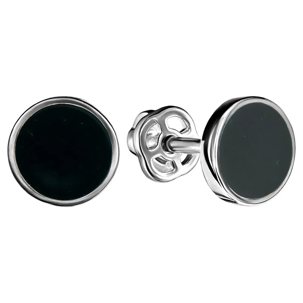 Серебряные серьги гвоздики (пусеты) с эмалью - цвет зеленый (темный) / Палладий. Средний вес ювелирного украшения 1.27 гр. Эмаль – холодная двухкомпонентная итальянская эмаль высокого качества. Имеет высокую степень устойчивости к царапинам и солнечному свету, ударам и механическим повреждениям.< /p> Все изделия собственного производства и имеют гарантию 12 месяцев. Арт. 8602PD.