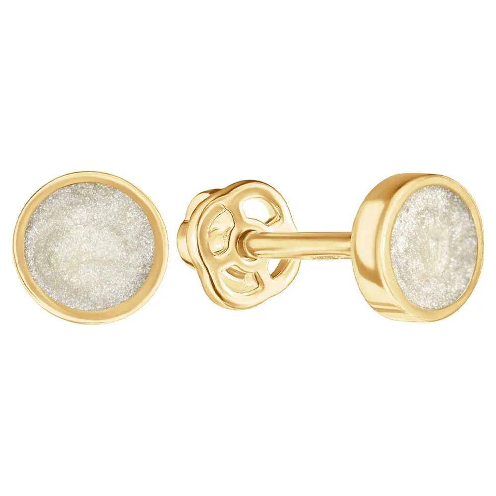 Серебряные серьги гвоздики (пусеты) с эмалью - цвет белый перламутр / Желтое Золото. Средний вес ювелирного украшения 0.86 гр. Эмаль – холодная двухкомпонентная итальянская эмаль высокого качества. Имеет высокую степень устойчивости к царапинам и солнечному свету, ударам и механическим повреждениям.< /p> Все изделия собственного производства и имеют гарантию 12 месяцев. Арт. 8605YG.