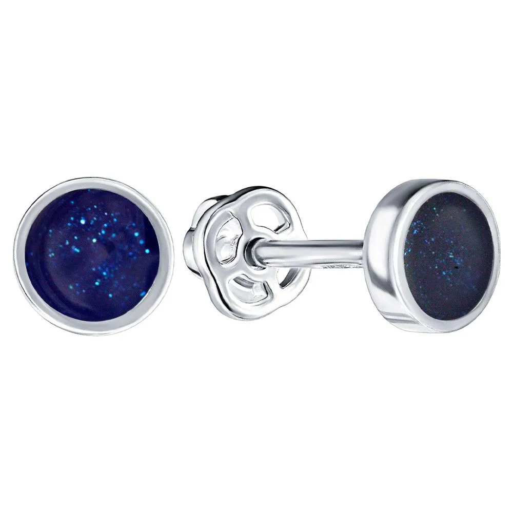 Серебряные серьги гвоздики (пусеты) с эмалью - цвет синий перламутр / Чистое Серебро. Средний вес ювелирного украшения 0.86 гр. Эмаль – холодная двухкомпонентная итальянская эмаль высокого качества. Имеет высокую степень устойчивости к царапинам и солнечному свету, ударам и механическим повреждениям.< /p> Все изделия собственного производства и имеют гарантию 12 месяцев. Арт. 8606AG.