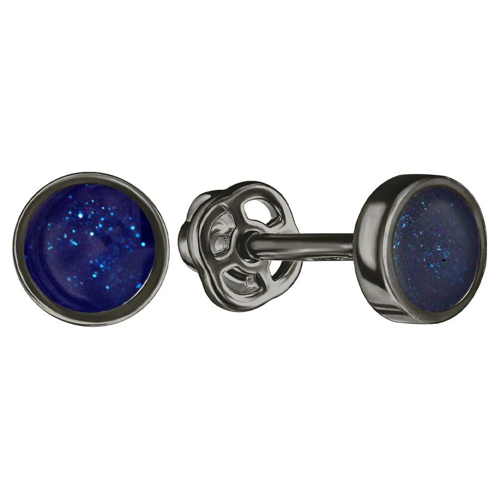 Серебряные серьги гвоздики (пусеты) с эмалью - цвет синий перламутр / Черный Родий. Средний вес ювелирного украшения 0.86 гр. Эмаль – холодная двухкомпонентная итальянская эмаль высокого качества. Имеет высокую степень устойчивости к царапинам и солнечному свету, ударам и механическим повреждениям.< /p> Все изделия собственного производства и имеют гарантию 12 месяцев. Арт. 8606BR.