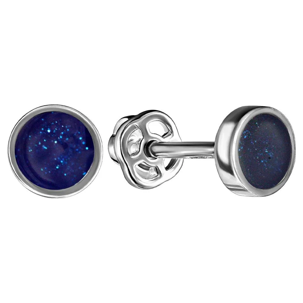 Серебряные серьги гвоздики (пусеты) с эмалью - цвет синий перламутр / Палладий. Средний вес ювелирного украшения 0.86 гр. Эмаль – холодная двухкомпонентная итальянская эмаль высокого качества. Имеет высокую степень устойчивости к царапинам и солнечному свету, ударам и механическим повреждениям.< /p> Все изделия собственного производства и имеют гарантию 12 месяцев. Арт. 8606PD.