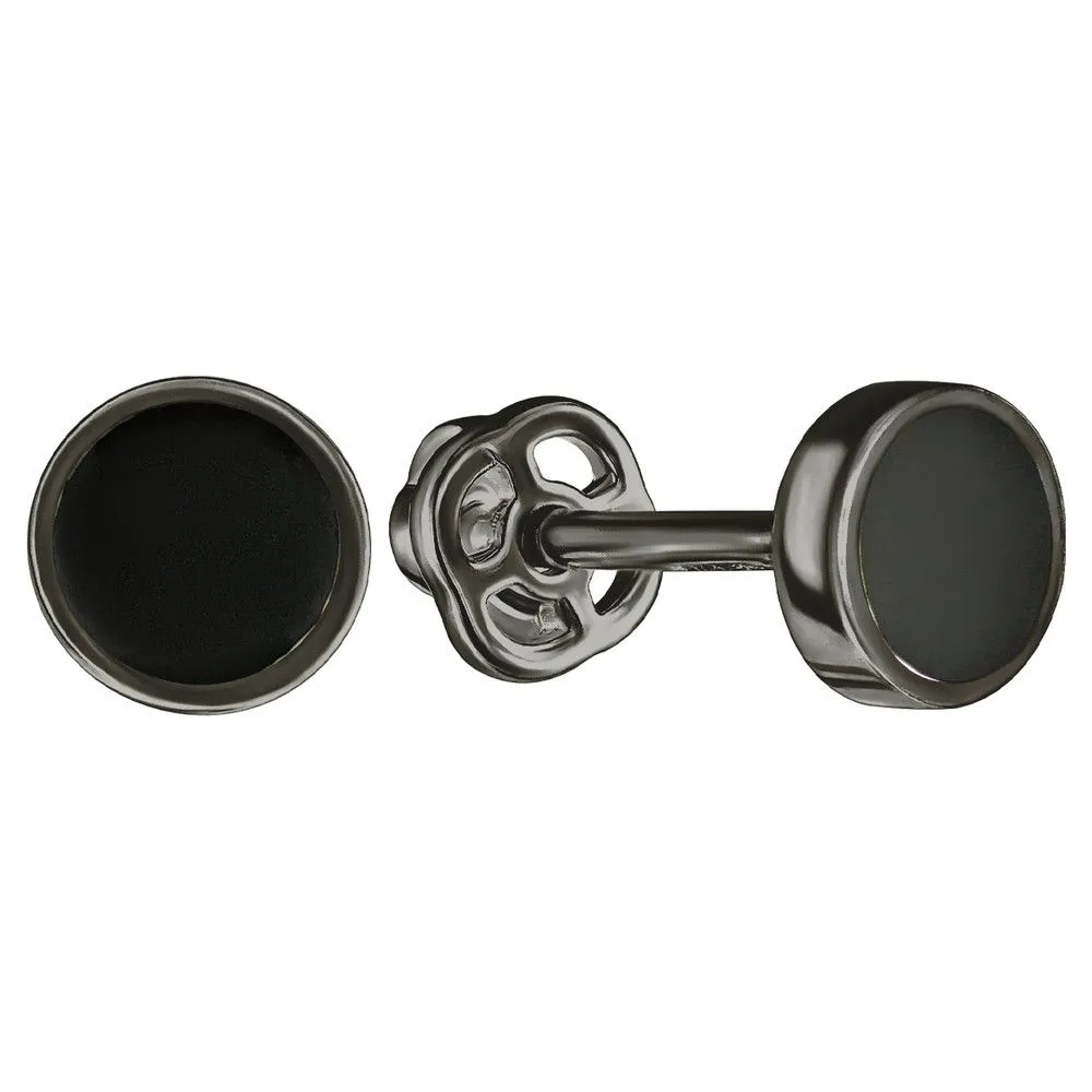 Серебряные серьги гвоздики (пусеты) с эмалью - цвет черный / Черный Родий. Средний вес ювелирного украшения 0.86 гр. Эмаль – холодная двухкомпонентная итальянская эмаль высокого качества. Имеет высокую степень устойчивости к царапинам и солнечному свету, ударам и механическим повреждениям.< /p> Все изделия собственного производства и имеют гарантию 12 месяцев. Арт. 8608BR.
