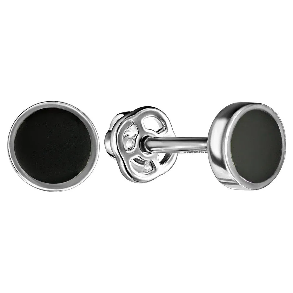 Серебряные серьги гвоздики (пусеты) с эмалью - цвет черный / Палладий. Средний вес ювелирного украшения 0.86 гр. Эмаль – холодная двухкомпонентная итальянская эмаль высокого качества. Имеет высокую степень устойчивости к царапинам и солнечному свету, ударам и механическим повреждениям.< /p> Все изделия собственного производства и имеют гарантию 12 месяцев. Арт. 8608PD.
