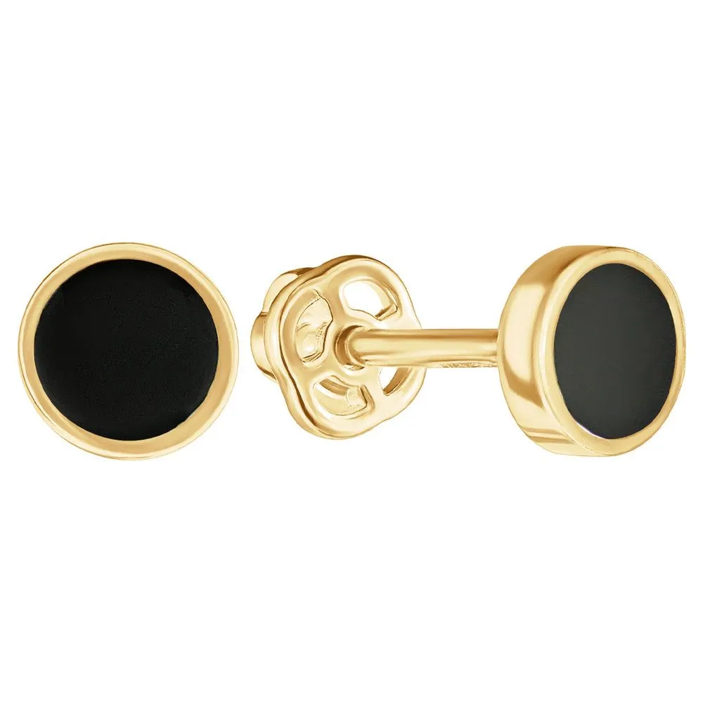 Серебряные серьги гвоздики (пусеты) с эмалью - цвет черный / Желтое Золото. Средний вес ювелирного украшения 0.86 гр. Эмаль – холодная двухкомпонентная итальянская эмаль высокого качества. Имеет высокую степень устойчивости к царапинам и солнечному свету, ударам и механическим повреждениям.< /p> Все изделия собственного производства и имеют гарантию 12 месяцев. Арт. 8608YG.