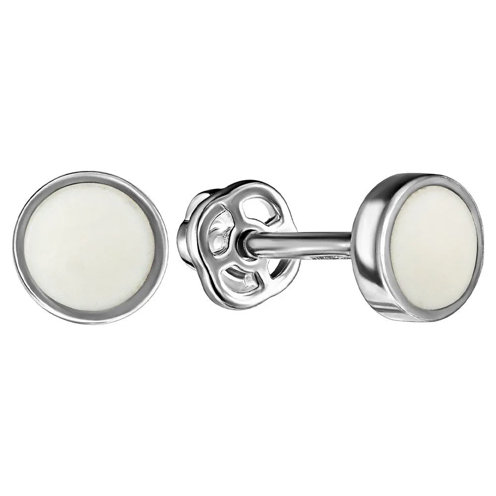 Серебряные серьги гвоздики (пусеты) с эмалью - цвет белый / Палладий. Средний вес ювелирного украшения 0.86 гр. Эмаль – холодная двухкомпонентная итальянская эмаль высокого качества. Имеет высокую степень устойчивости к царапинам и солнечному свету, ударам и механическим повреждениям.< /p> Все изделия собственного производства и имеют гарантию 12 месяцев. Арт. 8609PD.