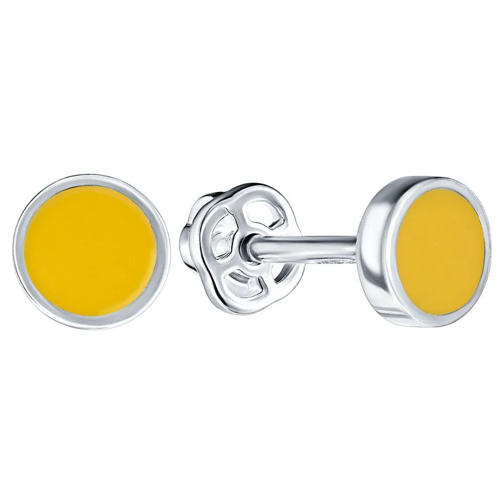 Серебряные серьги гвоздики (пусеты) с эмалью - цвет желтый / Чистое Серебро. Средний вес ювелирного украшения 0.86 гр. Эмаль – холодная двухкомпонентная итальянская эмаль высокого качества. Имеет высокую степень устойчивости к царапинам и солнечному свету, ударам и механическим повреждениям.< /p> Все изделия собственного производства и имеют гарантию 12 месяцев. Арт. 8610AG.