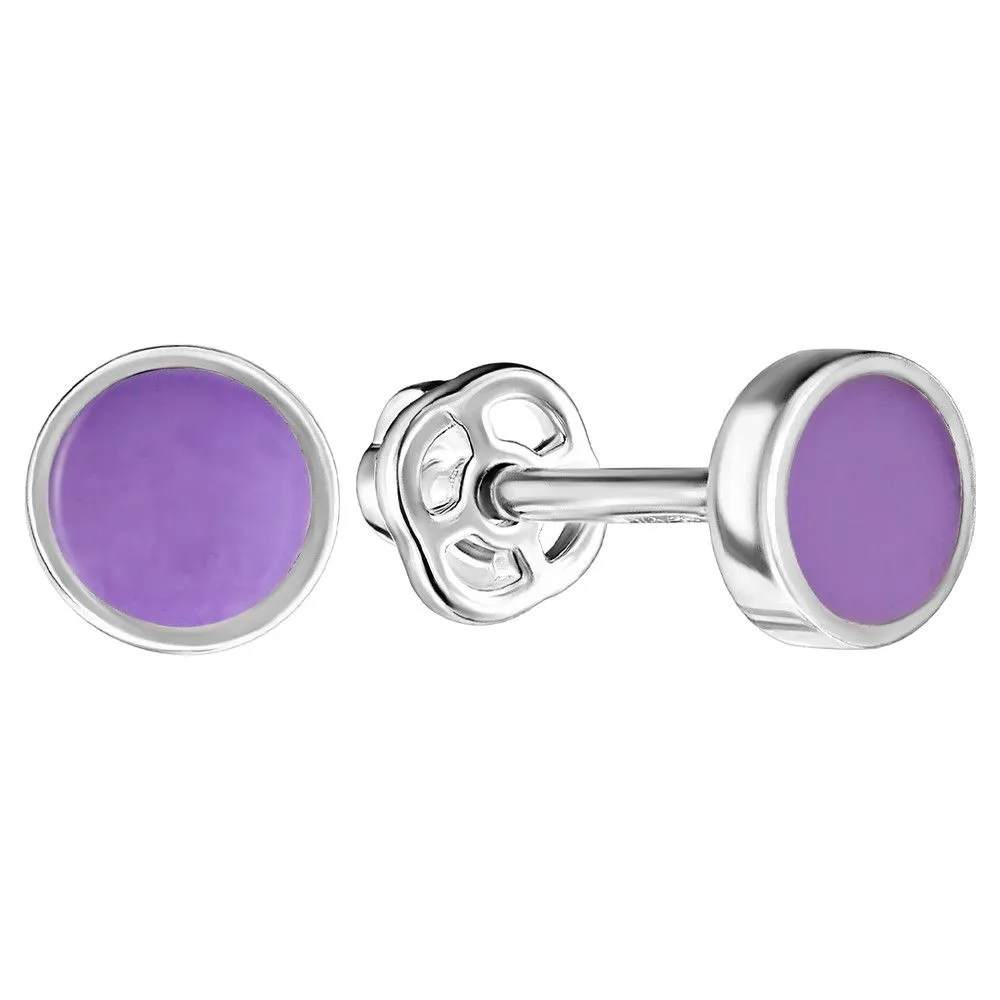 Серебряные серьги гвоздики (пусеты) с эмалью - цвет лавандовый / Без покрытия. Средний вес ювелирного украшения 0.86 гр. Эмаль – холодная двухкомпонентная итальянская эмаль высокого качества. Имеет высокую степень устойчивости к царапинам и солнечному свету, ударам и механическим повреждениям.< /p> Все изделия собственного производства и имеют гарантию 12 месяцев. Арт. 8611NP.