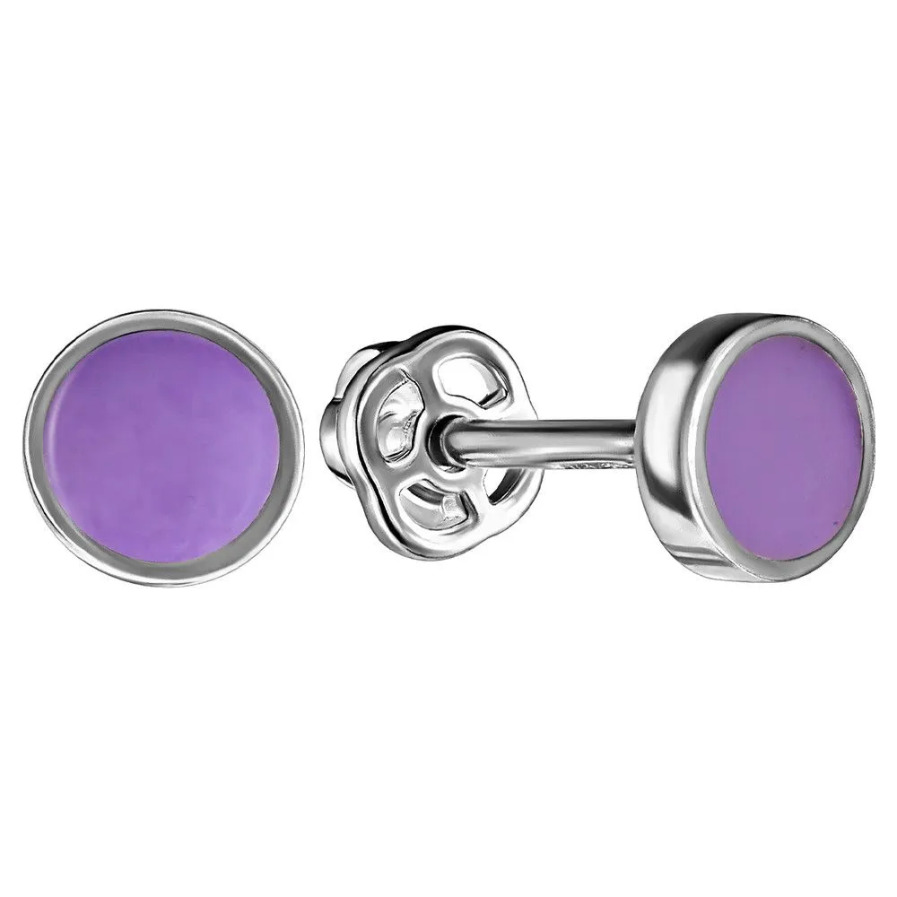 Серебряные серьги гвоздики (пусеты) с эмалью - цвет лавандовый / Палладий. Средний вес ювелирного украшения 0.86 гр. Эмаль – холодная двухкомпонентная итальянская эмаль высокого качества. Имеет высокую степень устойчивости к царапинам и солнечному свету, ударам и механическим повреждениям.< /p> Все изделия собственного производства и имеют гарантию 12 месяцев. Арт. 8611PD.