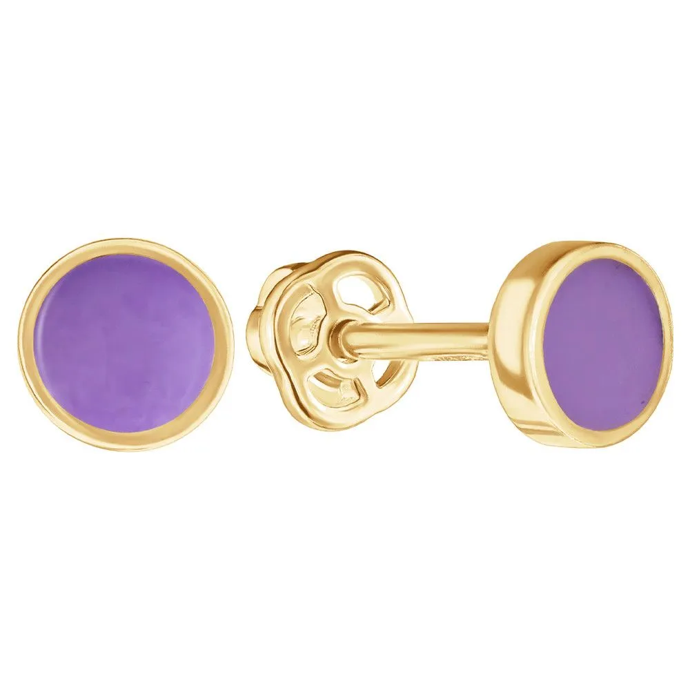Серебряные серьги гвоздики (пусеты) с эмалью - цвет лавандовый / Желтое Золото. Средний вес ювелирного украшения 0.86 гр. Эмаль – холодная двухкомпонентная итальянская эмаль высокого качества. Имеет высокую степень устойчивости к царапинам и солнечному свету, ударам и механическим повреждениям.< /p> Все изделия собственного производства и имеют гарантию 12 месяцев. Арт. 8611YG.