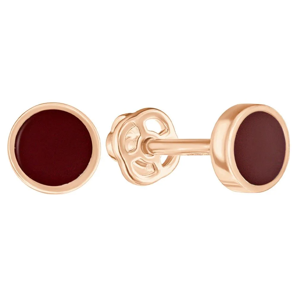 Серебряные серьги гвоздики (пусеты) с эмалью - цвет бордовый / Красное золото. Средний вес ювелирного украшения 0.86 гр. Эмаль – холодная двухкомпонентная итальянская эмаль высокого качества. Имеет высокую степень устойчивости к царапинам и солнечному свету, ударам и механическим повреждениям.< /p> Все изделия собственного производства и имеют гарантию 12 месяцев. Арт. 8613RG.