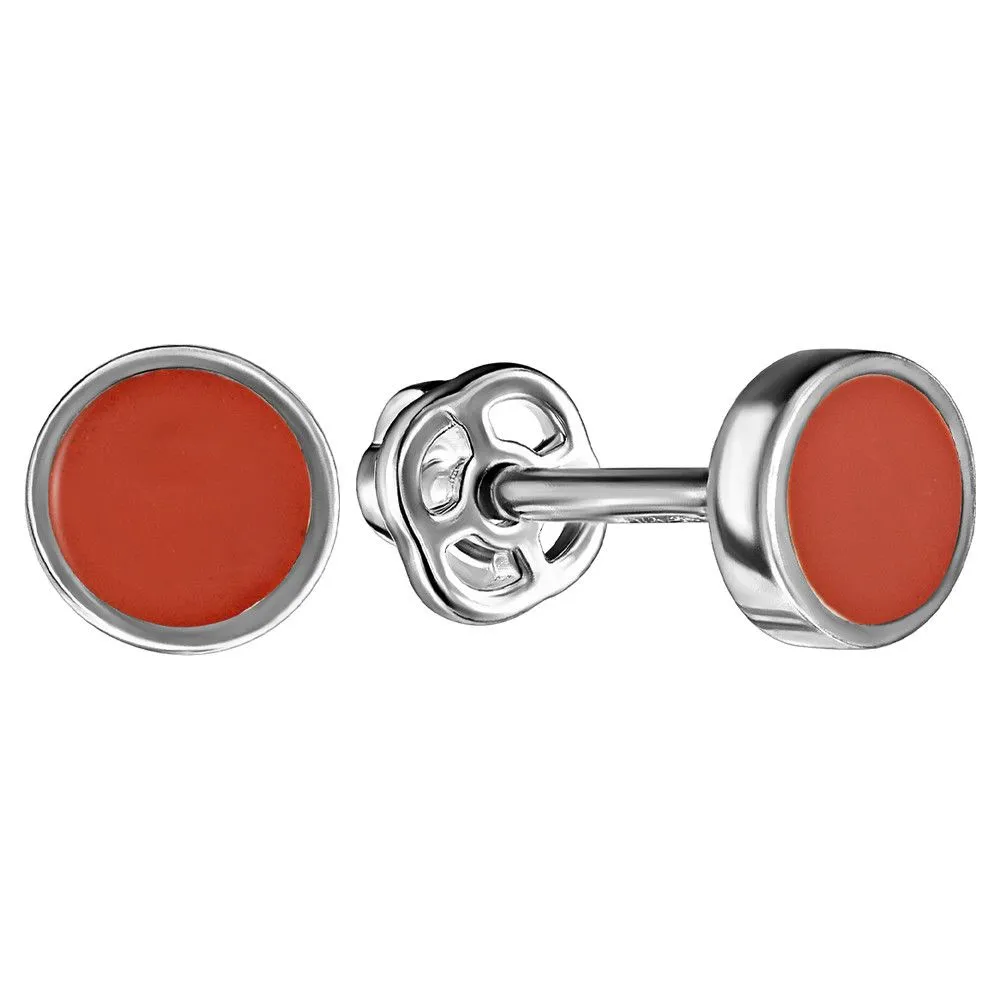 Серебряные серьги гвоздики (пусеты) с эмалью - цвет оранжевый / Палладий. Средний вес ювелирного украшения 0.86 гр. Эмаль – холодная двухкомпонентная итальянская эмаль высокого качества. Имеет высокую степень устойчивости к царапинам и солнечному свету, ударам и механическим повреждениям.< /p> Все изделия собственного производства и имеют гарантию 12 месяцев. Арт. 8614PD.