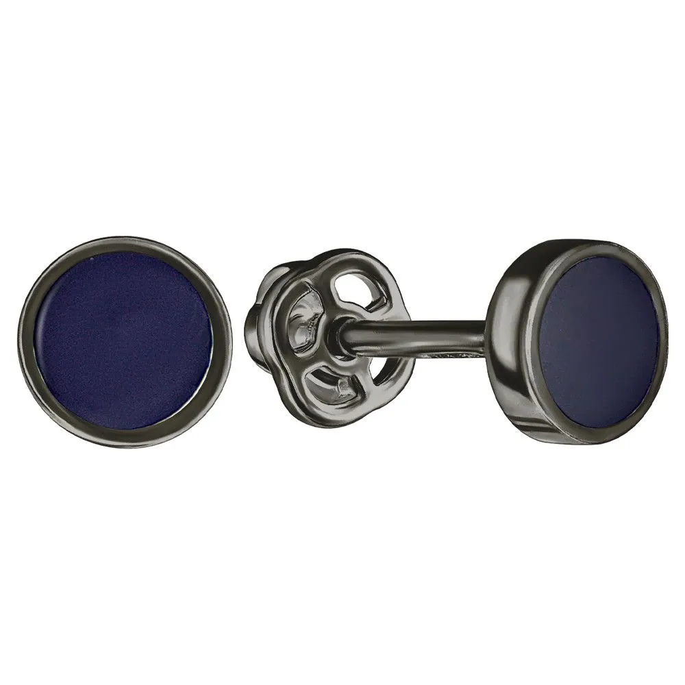 Серебряные серьги гвоздики (пусеты) с эмалью - цвет синий / Черный Родий. Средний вес ювелирного украшения 0.86 гр. Эмаль – холодная двухкомпонентная итальянская эмаль высокого качества. Имеет высокую степень устойчивости к царапинам и солнечному свету, ударам и механическим повреждениям.< /p> Все изделия собственного производства и имеют гарантию 12 месяцев. Арт. 8615BR.