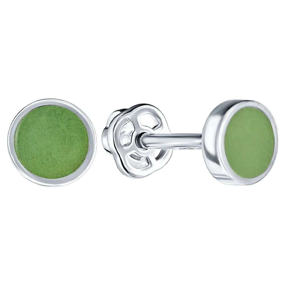Серебряные серьги гвоздики (пусеты) с эмалью - цвет фисташковый / Чистое Серебро. Средний вес ювелирного украшения 0.86 гр. Эмаль – холодная двухкомпонентная итальянская эмаль высокого качества. Имеет высокую степень устойчивости к царапинам и солнечному свету, ударам и механическим повреждениям.< /p> Все изделия собственного производства и имеют гарантию 12 месяцев. Арт. 8617AG.
