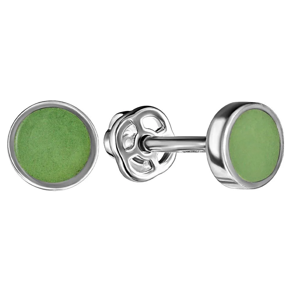 Серебряные серьги гвоздики (пусеты) с эмалью - цвет фисташковый / Палладий. Средний вес ювелирного украшения 0.86 гр. Эмаль – холодная двухкомпонентная итальянская эмаль высокого качества. Имеет высокую степень устойчивости к царапинам и солнечному свету, ударам и механическим повреждениям.< /p> Все изделия собственного производства и имеют гарантию 12 месяцев. Арт. 8617PD.