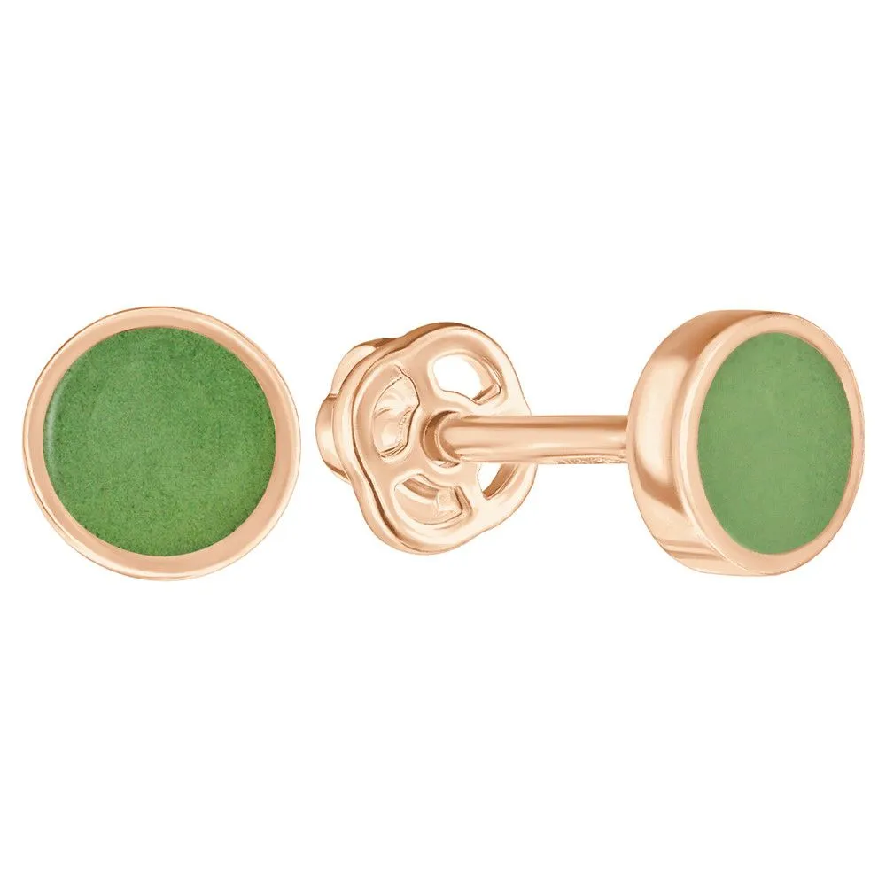 Серебряные серьги гвоздики (пусеты) с эмалью - цвет фисташковый / Красное золото. Средний вес ювелирного украшения 0.86 гр. Эмаль – холодная двухкомпонентная итальянская эмаль высокого качества. Имеет высокую степень устойчивости к царапинам и солнечному свету, ударам и механическим повреждениям.< /p> Все изделия собственного производства и имеют гарантию 12 месяцев. Арт. 8617RG.