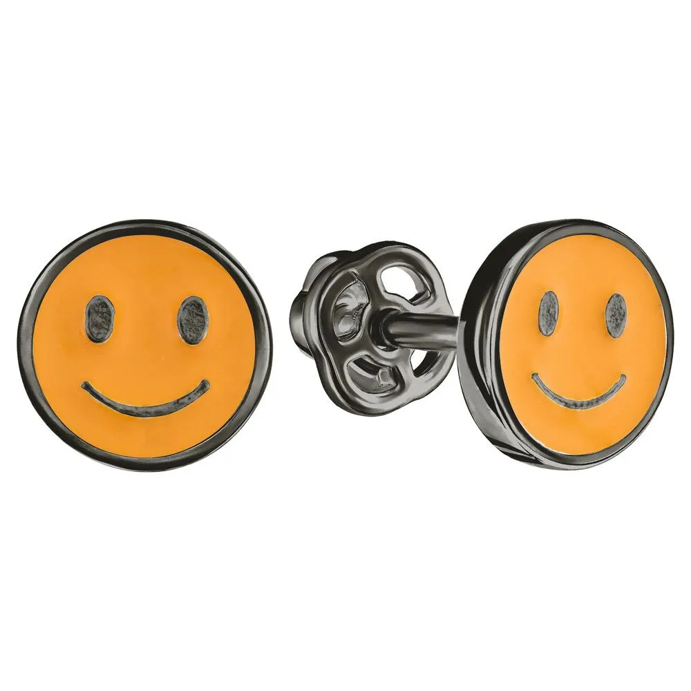 Серебряные серьги гвоздики Смайлик с эмалью - цвет желто-оранжевый / Черный Родий. Средний вес ювелирного украшения 1.23 гр. Эмаль – холодная двухкомпонентная итальянская эмаль высокого качества. Имеет высокую степень устойчивости к царапинам и солнечному свету, ударам и механическим повреждениям.< /p> Все изделия собственного производства и имеют гарантию 12 месяцев. Арт. 8839BR.