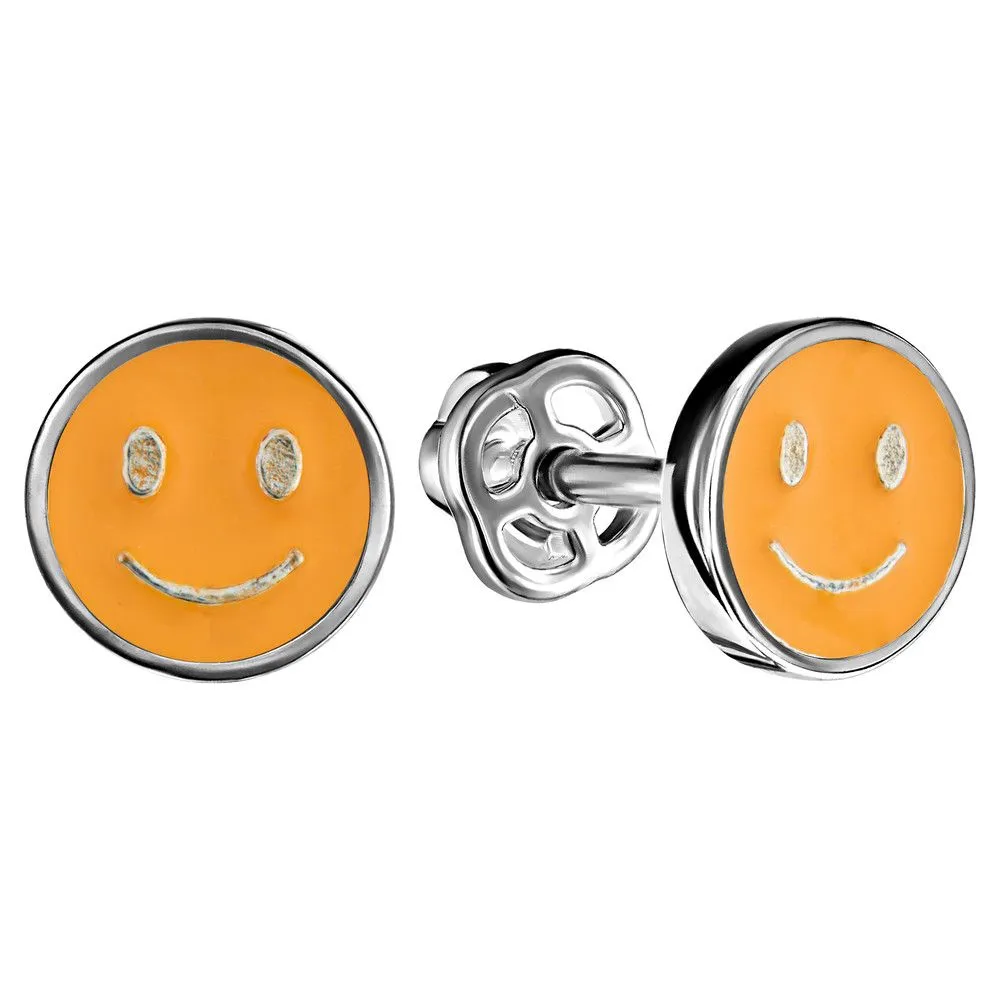 Серебряные серьги гвоздики Смайлик с эмалью - цвет желто-оранжевый / Палладий. Средний вес ювелирного украшения 1.23 гр. Эмаль – холодная двухкомпонентная итальянская эмаль высокого качества. Имеет высокую степень устойчивости к царапинам и солнечному свету, ударам и механическим повреждениям.< /p> Все изделия собственного производства и имеют гарантию 12 месяцев. Арт. 8839PD.