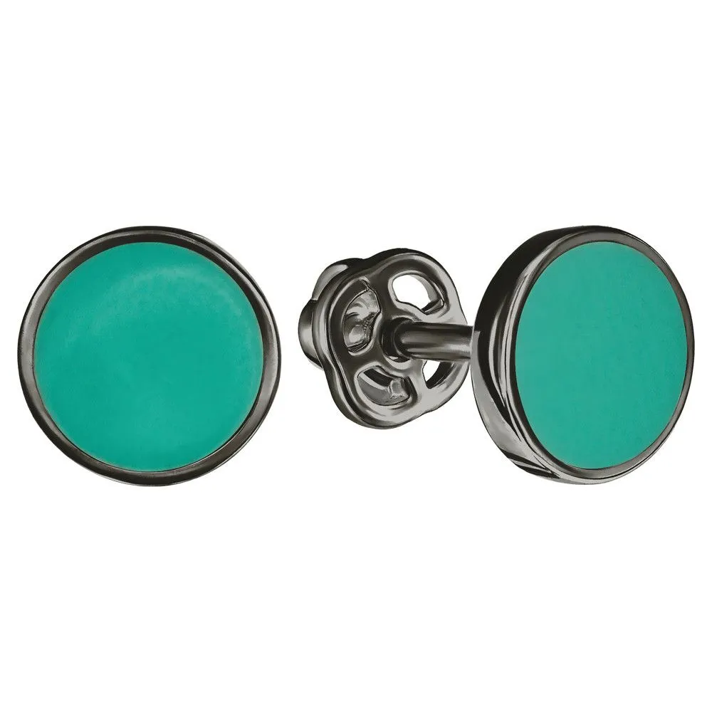 Серебряные серьги гвоздики (пусеты) с эмалью - цвет тиффани / Черный Родий. Средний вес ювелирного украшения 1.27 гр. Эмаль – холодная двухкомпонентная итальянская эмаль высокого качества. Имеет высокую степень устойчивости к царапинам и солнечному свету, ударам и механическим повреждениям.< /p> Все изделия собственного производства и имеют гарантию 12 месяцев. Арт. 8842BR.