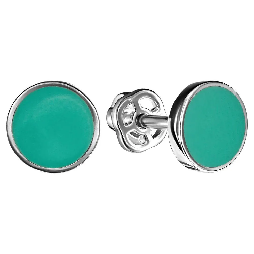 Серебряные серьги гвоздики (пусеты) с эмалью - цвет тиффани / Палладий. Средний вес ювелирного украшения 1.27 гр. Эмаль – холодная двухкомпонентная итальянская эмаль высокого качества. Имеет высокую степень устойчивости к царапинам и солнечному свету, ударам и механическим повреждениям.< /p> Все изделия собственного производства и имеют гарантию 12 месяцев. Арт. 8842PD.