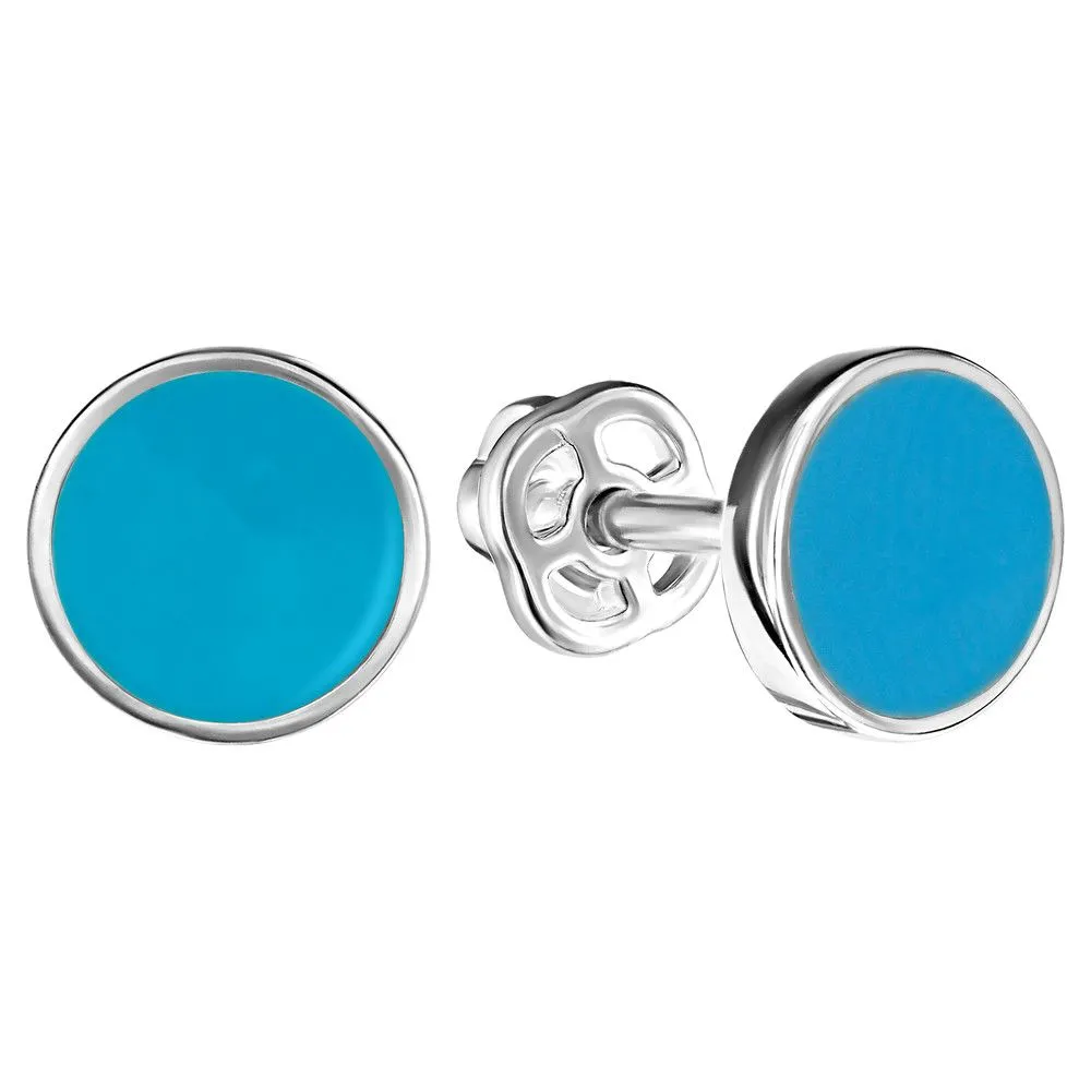 Серебряные серьги гвоздики (пусеты) с эмалью - цвет голубой яркий / Без покрытия. Средний вес ювелирного украшения 1.27 гр. Эмаль – холодная двухкомпонентная итальянская эмаль высокого качества. Имеет высокую степень устойчивости к царапинам и солнечному свету, ударам и механическим повреждениям.< /p> Все изделия собственного производства и имеют гарантию 12 месяцев. Арт. 8843NP.