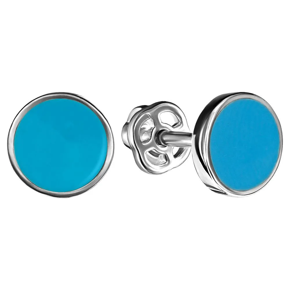 Серебряные серьги гвоздики (пусеты) с эмалью - цвет голубой яркий / Палладий. Средний вес ювелирного украшения 1.27 гр. Эмаль – холодная двухкомпонентная итальянская эмаль высокого качества. Имеет высокую степень устойчивости к царапинам и солнечному свету, ударам и механическим повреждениям.< /p> Все изделия собственного производства и имеют гарантию 12 месяцев. Арт. 8843PD.