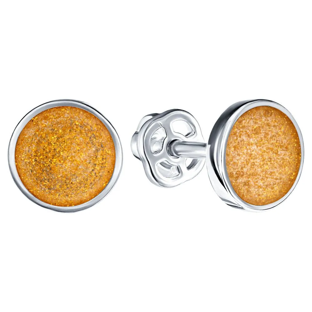 Серебряные серьги гвоздики (пусеты) с эмалью - цвет золото / Чистое Серебро. Средний вес ювелирного украшения 1.27 гр. Эмаль – холодная двухкомпонентная итальянская эмаль высокого качества. Имеет высокую степень устойчивости к царапинам и солнечному свету, ударам и механическим повреждениям.< /p> Все изделия собственного производства и имеют гарантию 12 месяцев. Арт. 8844AG.