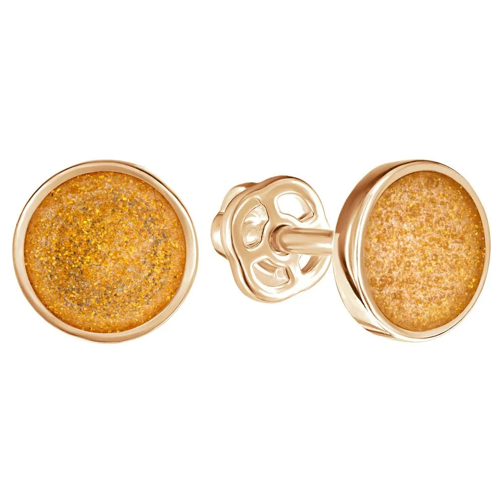 Серебряные серьги гвоздики (пусеты) с эмалью - цвет золото / Красное золото. Средний вес ювелирного украшения 1.27 гр. Эмаль – холодная двухкомпонентная итальянская эмаль высокого качества. Имеет высокую степень устойчивости к царапинам и солнечному свету, ударам и механическим повреждениям.< /p> Все изделия собственного производства и имеют гарантию 12 месяцев. Арт. 8844RG.