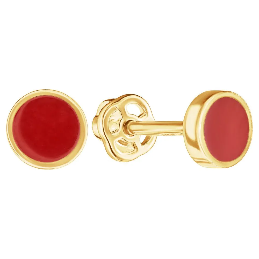 Серебряные серьги гвоздики (пусеты) с эмалью - цвет красный / Желтое Золото. Средний вес ювелирного украшения 0.86 гр. Эмаль – холодная двухкомпонентная итальянская эмаль высокого качества. Имеет высокую степень устойчивости к царапинам и солнечному свету, ударам и механическим повреждениям.< /p> Все изделия собственного производства и имеют гарантию 12 месяцев. Арт. 8846YG.