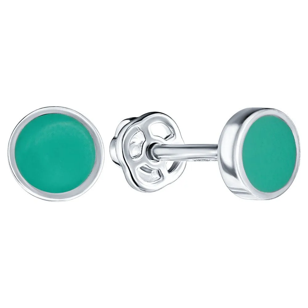 Серебряные серьги гвоздики (пусеты) с эмалью - цвет тиффани / Чистое Серебро. Средний вес ювелирного украшения 0.86 гр. Эмаль – холодная двухкомпонентная итальянская эмаль высокого качества. Имеет высокую степень устойчивости к царапинам и солнечному свету, ударам и механическим повреждениям.< /p> Все изделия собственного производства и имеют гарантию 12 месяцев. Арт. 8847AG.